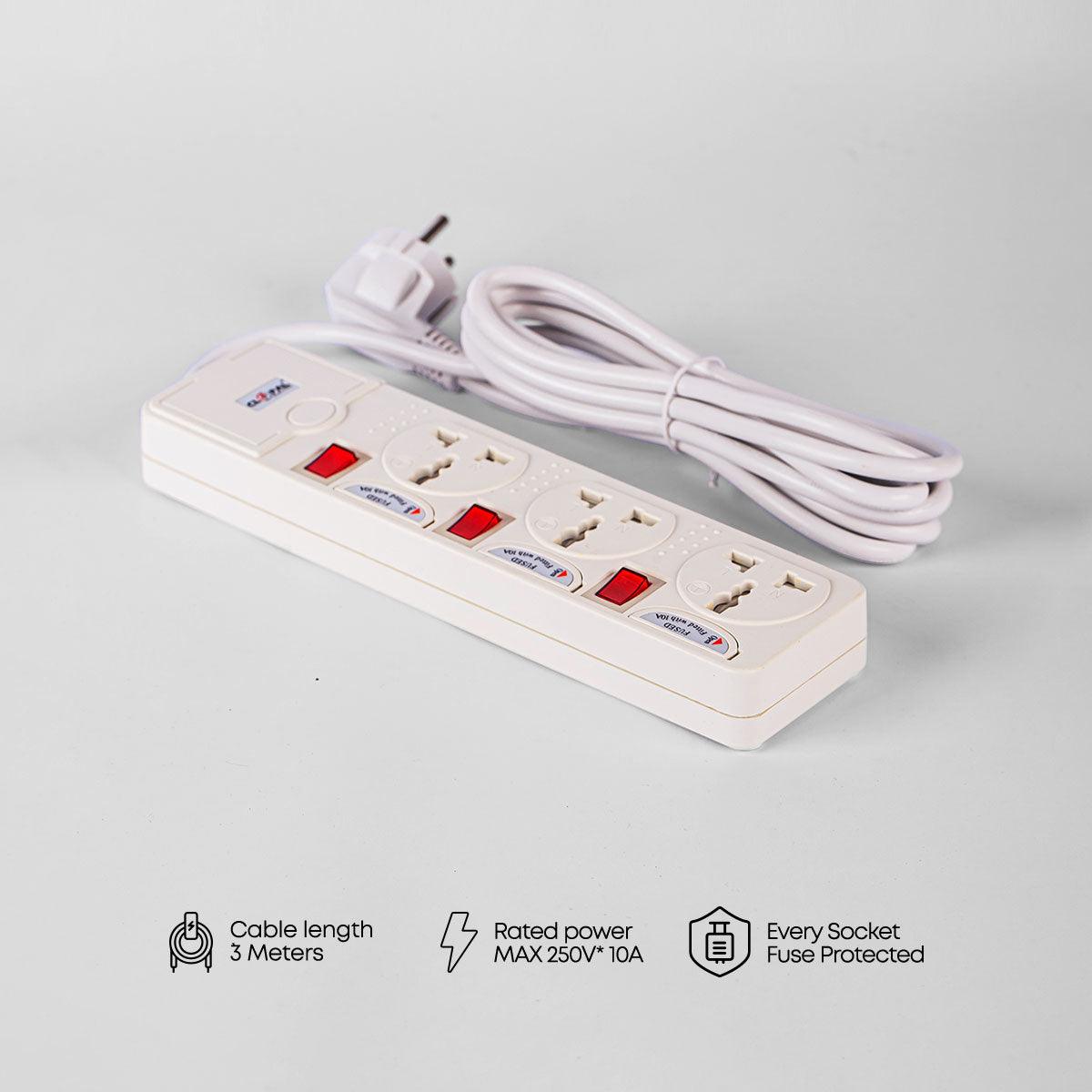 The Clopal Extension Lead is a safe and reliable power solution, designed with a heavy-duty 3-meter copper cable for efficient power transmission. Available in 3, 4, 5, and 6 power socket options, this extension board is perfect for home, office, and commercial use. Featuring built-in fuse protection, it ensures maximum safety against overloading and short circuits.