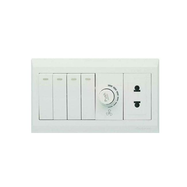 Clopal Pure White Series 4 + 1 Dimmer + 1 Socket Superior Quality