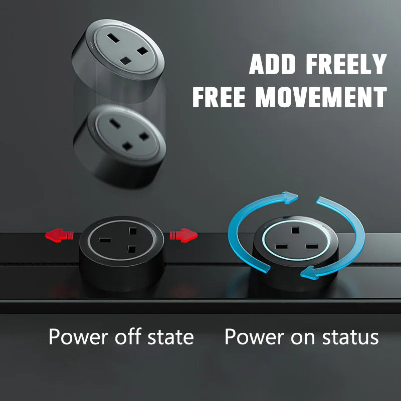 Smart Track Socket Design: Features a removable round adapter, allowing seamless and adjustable positioning for multiple appliances.