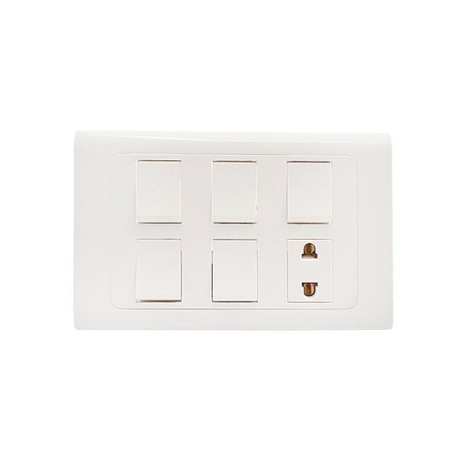 Clopal Typer White Series 5 switch + 1 socket Superior Quality