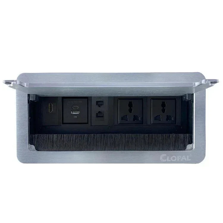 Material ?This Metal malfunction desktop Socket is made of aluminum alloy, and the top panel is a silver color with a brushed elegant finish